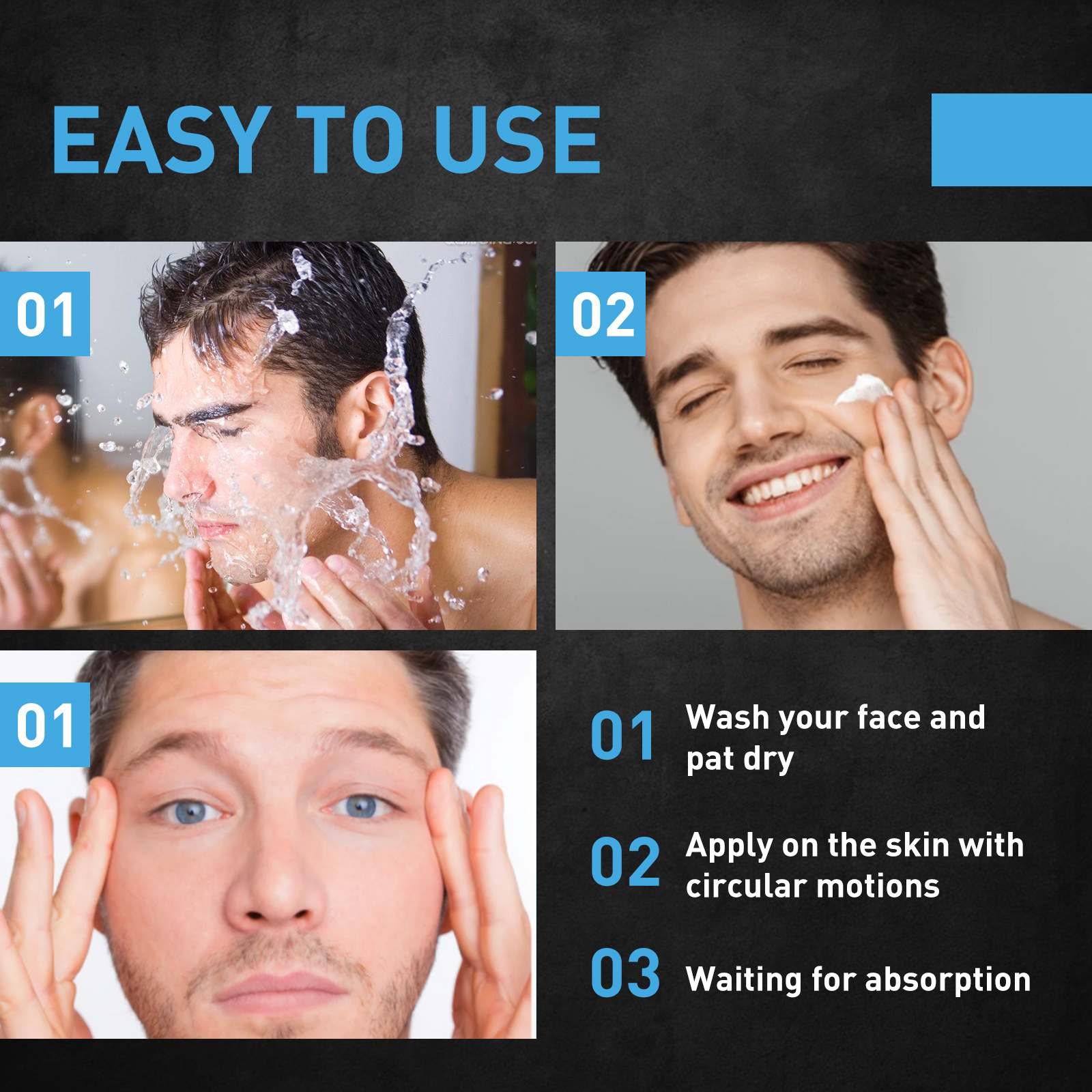 Delivers essential hydration deep into the skin layers, refreshing skin all over. Formulated for men, get a boost in self-confidence as it restores your youthful looks. It uses only premium ingredients like Matrixyl 3000+ Complex, Argireline, Hyaluronic Acid, Vitamins A & E, Peptides, and Collagen.